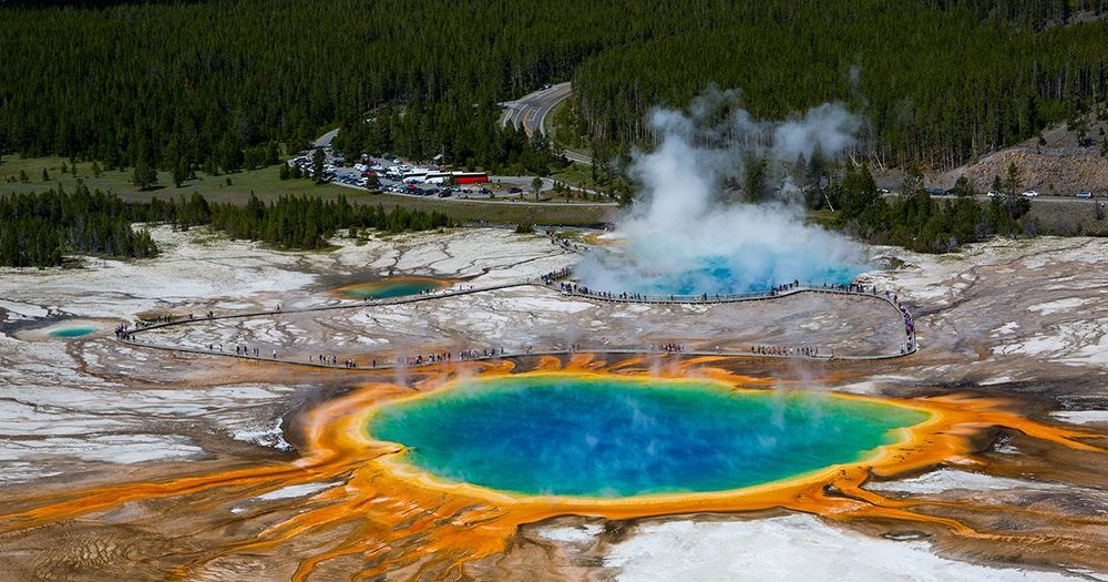 Some of the most popular tourist spots in Yellowstone National Park are the various hot springs, of which the Orange Spring Mound – pictured above – is a notable example of. These hot springs take on lots of wild and wacky colors, which will definitely make you feel like you’re on an alien world. Now, lots of people enjoy dipping into hot springs. Who could blame them? But you should be aware, at least, that hot springs exist because of geothermally heated groundwater rising from the earth’s crust … or in other words, volcanoes. So, the Yellowstone Caldera might be scary, but it’s also the reason the Orange Spring Mound exists.
